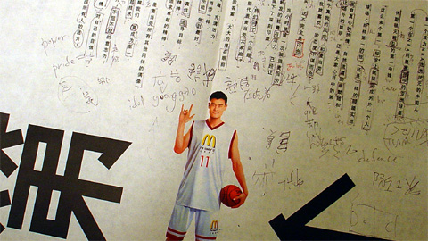 上海出身NBA ヒューストンロケッツ所属の姚明。