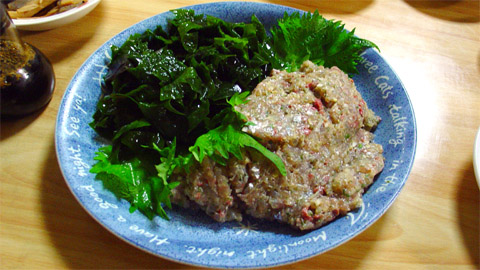 アジのタタキは知ってると思いますが、それをもっとここまで粘りがでるまでタタいたもの。