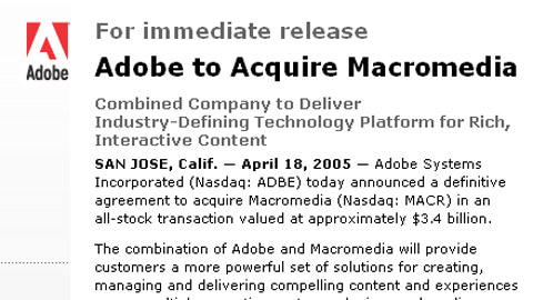 米AdobeがMacromediaを34億ドルで 買収!!!