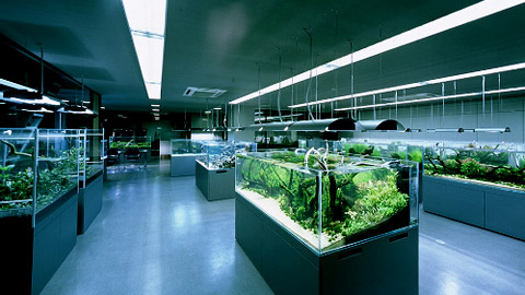 光合成で生まれた酸素を照明に照らされた水槽のなかでみつける究極の癒し系