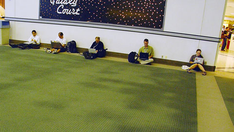 こんなに早いのに、こーやって、床のLANにへばりつき、熱烈なファンがいます。