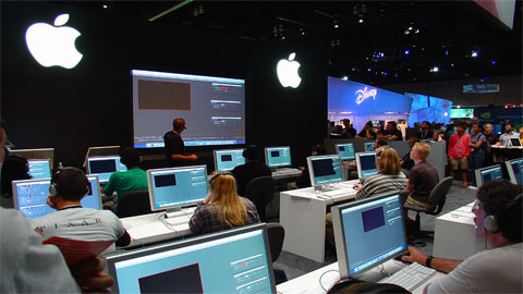 Appleはこんな感じ。 FinalCutを触らせてます。 奥にはDisneyブースも。