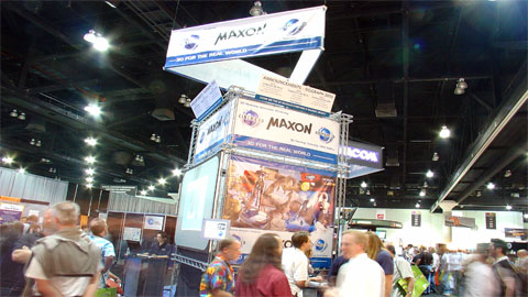 んで昼は展示へ。 MAXONブースでドイツ人の開発プログラマーにカクカクしかじか