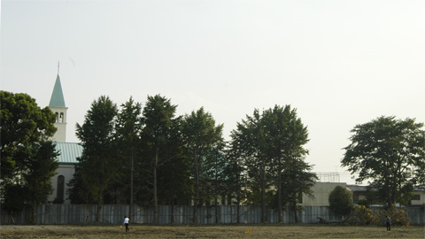 もともとは高専だったこの場所で 素敵な既存樹木ととなりに教会のある