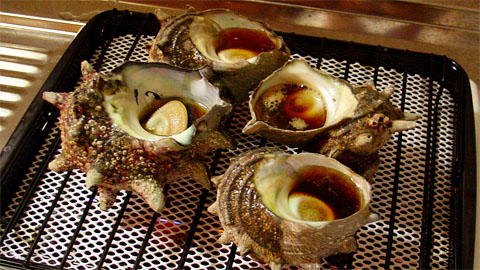 黒鯛用の餌サザエ。 このために、焼網買ってしまいました。。