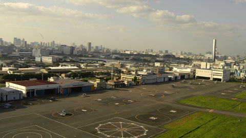 「東京ヘリポート」から出発。 心配された天気ですが、今日しか晴れがない。ということもあり