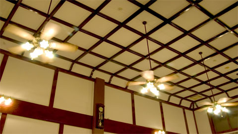 レトロなタイル張りと、この天井は元々銭湯建築のリノベーション。