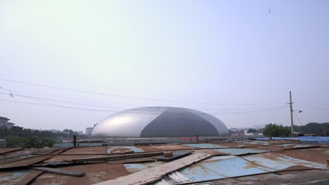 24日、北京で論争を巻き起こしているというポール・アンドリュー設計の国家大劇場へ
