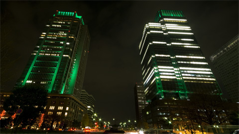 丸ビルも新丸ビルもエメラルドグリーンへ。