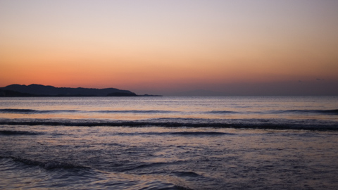 夕日と併走するものの、北条海岸へついたときは日没で間に合わず・・・・