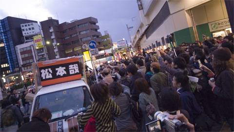 高円寺駅前での騒がしいこの人だかり。