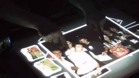 カメラからなかの写真がテーブルに広がり、指をつかってビヨーン!と直感的に。