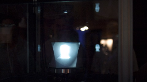 続いては、期待していた『An Interactive 360° Light Field Display』 開発にHDRIのPaul Debevecも参加している360度ディスプレイ。 原理は超高速のプロジェクションを回転ミラーに当てて、アニメーションを実現している と、説明しても、写真にもうまく納められなかったので、 ここは特別にムービーUP! 是非ご覧下さい。