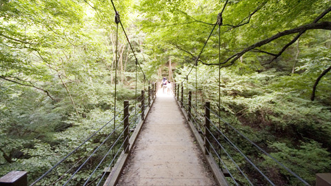 緑に包まれた ちょっと短めな吊り橋でした。
