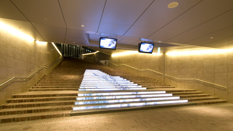 地下鉄につながる階段を降りたところを振り返ると、