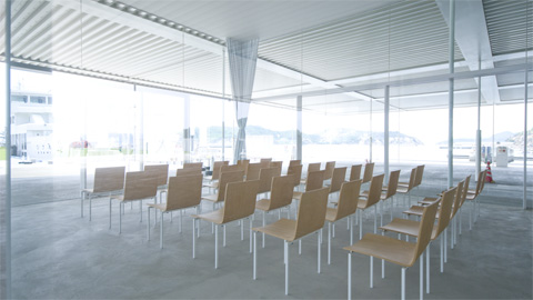 こちらの宮ノ浦港、「海の駅なおしま」は四角い平面。