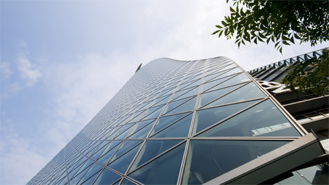 でも 近くに行ってもこのカーテンウォールの施工の美しさに驚きました。すごいです。