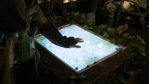 で、腕にグローブをはめ、ディスプレイに手を置くと アリンコが集まってくる。