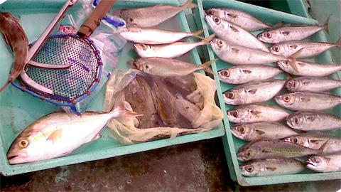 うちの船での釣果がこちら。 大量のサバで初心者は楽しみ。