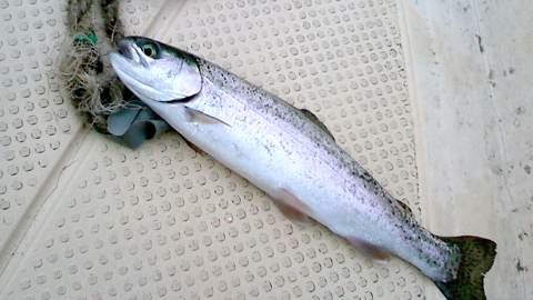 今回はまずまず、30cmほどのレインボートラウトをGet。