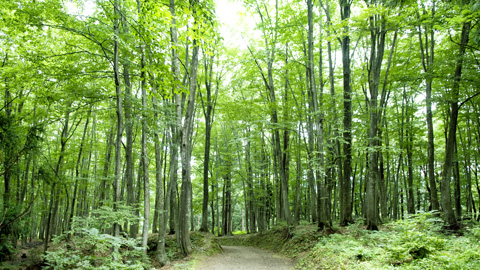 樹齢約80年ほどのブナの木が一面に生い茂る 美人林へ。