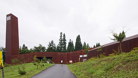二日目は松之山エリアをせめて行きます。 最初は「森の学校・キョロロ」 細長い展示空間と、左側に見える展望台から構成される建築だが。 なんだか、風景になじもうと、がんばっている外からきた生物。 ランドスケープに同化したがっているような。 ちょっと不思議な建物だ。