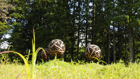 丸太を組み合わせた3つの球体が気になった。