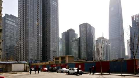 朝の出社。ホテルから歩いて、北京事務所の住所を頼移動中。。。