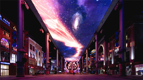 フルカラーLEDの超巨大な天井。