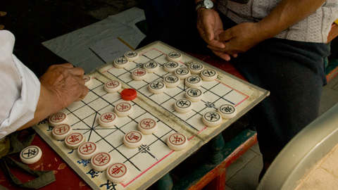 公園の中には いろいろ楽しんでいる中国のおじいさんおばあさん。