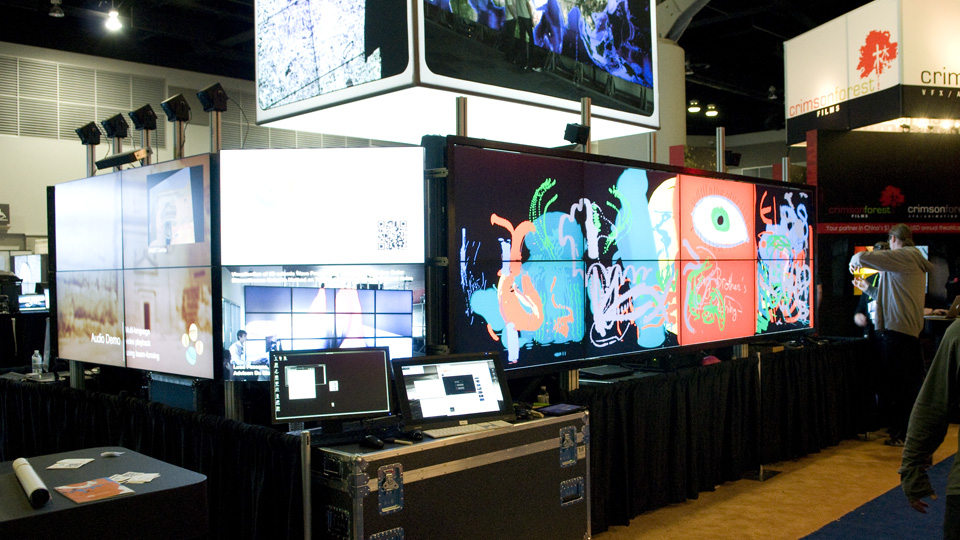モニタをずらっとならべた巨大iPadのような ペイントウォールのシステム。
