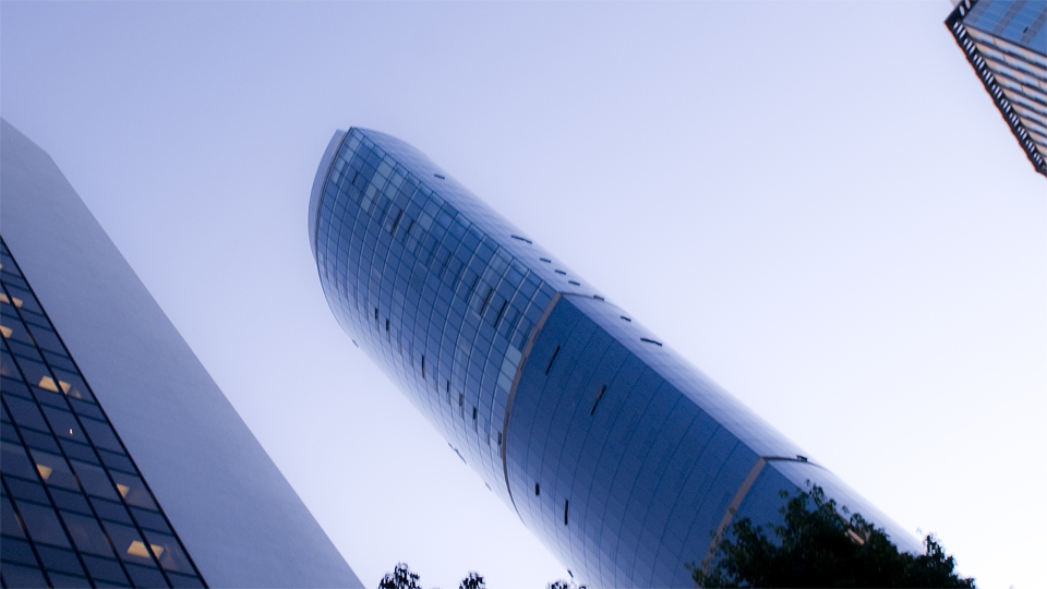 どう見ても CGのサンプルでしか見ないような空とオフィスビル。 マジックアワーが長く続く。