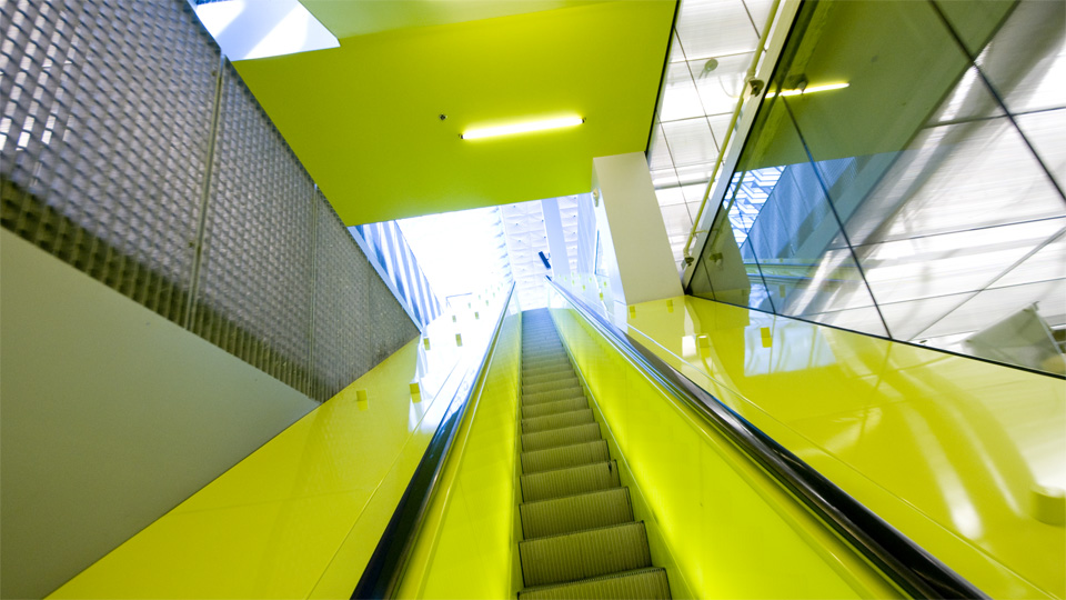 黄色いエスカレーターに誘われ、上へ