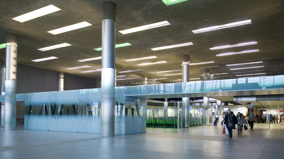 と思わせる色使い。空港出口です。