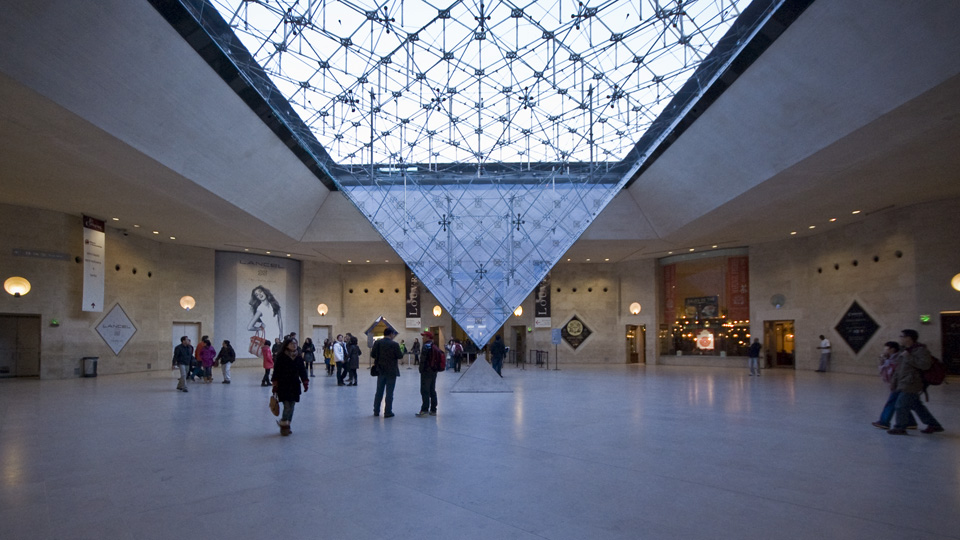 イオ・ミン・ペイの設計になる逆ピラミッドを抜け外へ。