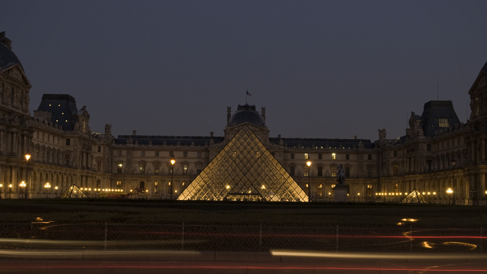TOSHIBAのメセナにてLEDでライトアップされるピラミッド。