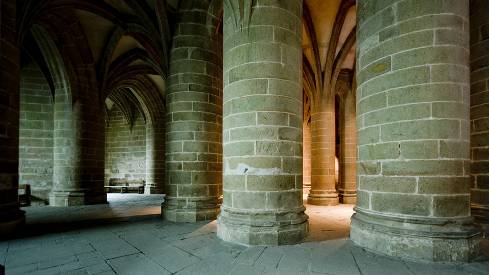 太い柱だらけの空間
