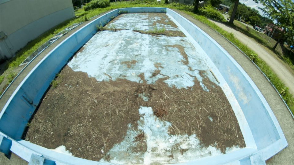 廃校のプールですが 飛び込みたい暑さ。