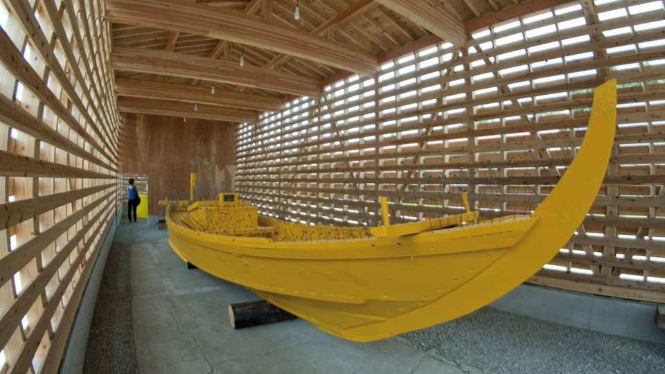 未来への航行のための黄色い木船