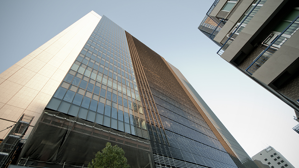 南面には都内オフィスビル最大の容量150kwを誇る太陽電池一体型ルーバー!