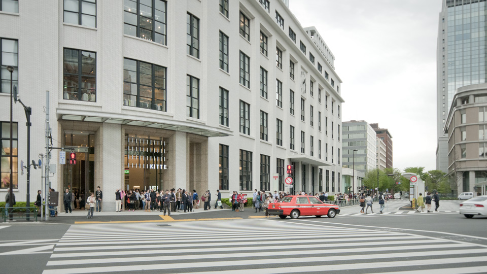 昭和 6 年に竣工した旧東京中央郵便局が生まれ変わり、低層部の商業ゾーンKITTEへ。