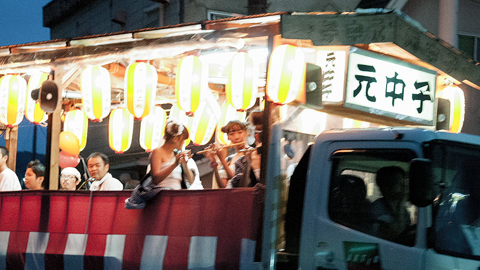 トラックの上には お囃子隊もいるんですが、夏祭りの風情が欲しいよ!