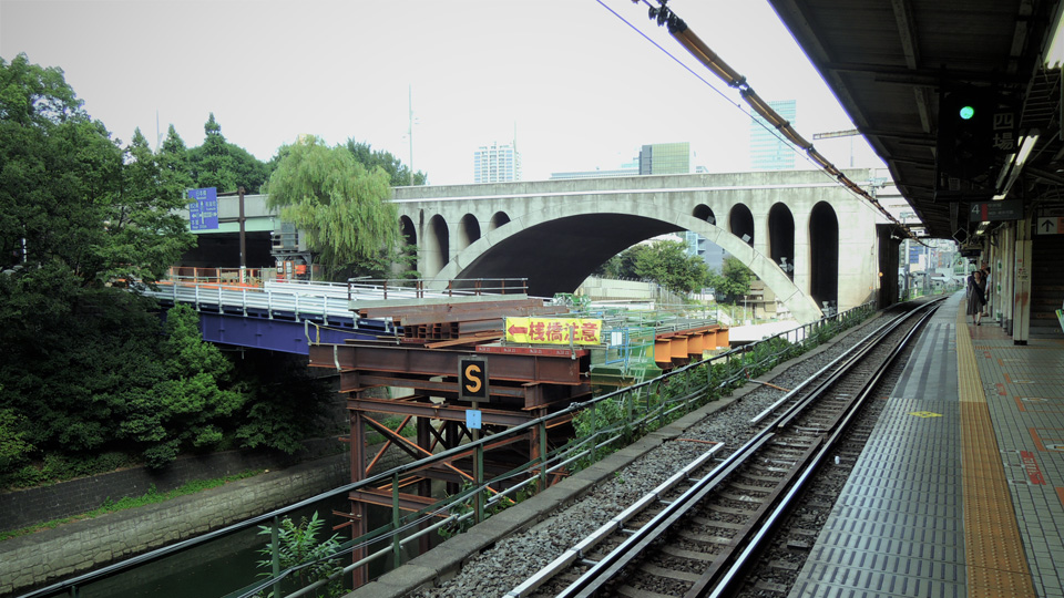 御茶ノ水駅に橋が架かっていた。 聖橋・御茶ノ水橋の間に工事用搬入の橋。