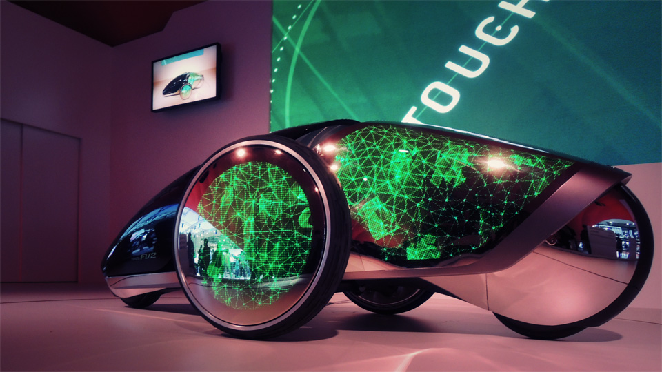 の中にある 液晶ディスプレイをボディに纏った未来カー「TOYOTA FV2」