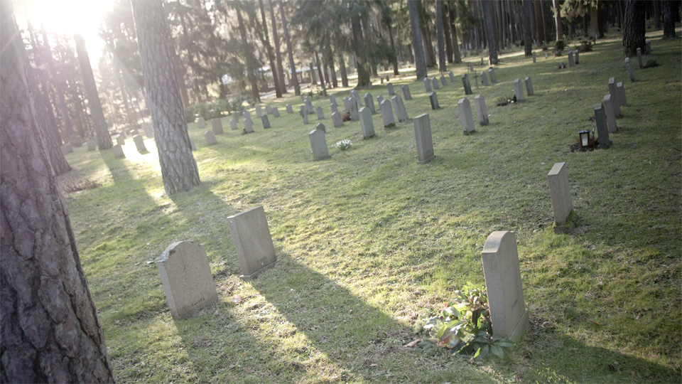 樹木が作り出す光と影、 墓地を輝かせています。