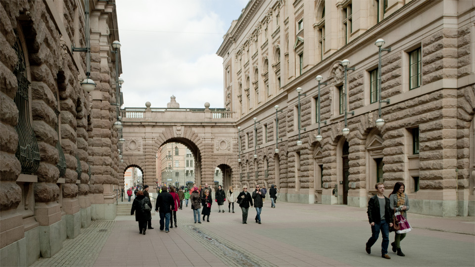 スウェーデンの立法機関、リクスダーゲン (Riksdagen)付近です。