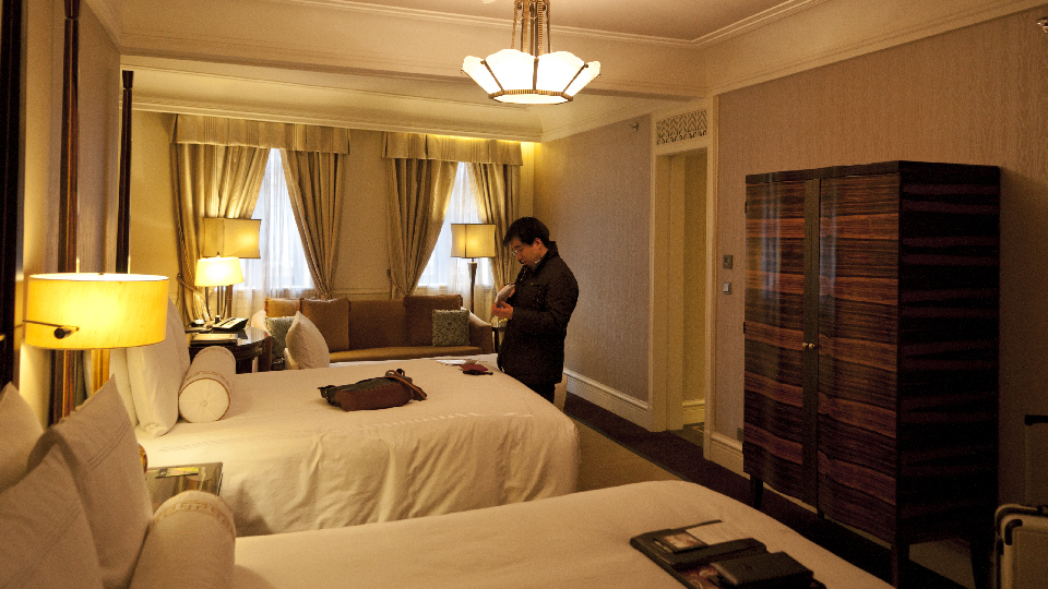 写真は和平飯店。 じゃんけんで勝ってしまったが、 初海外の長田がいいBedに寝るべきだったか。