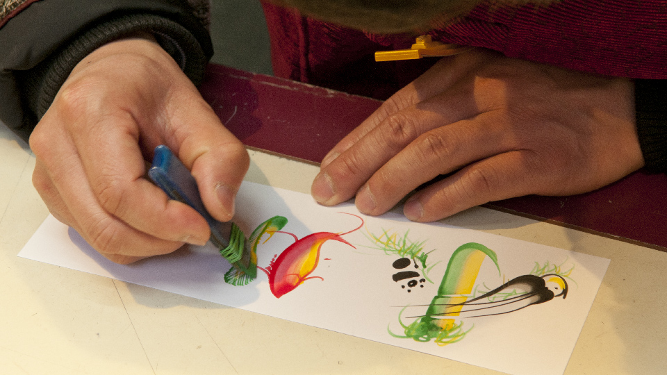 花文字に挑戦してもらいました。 ライブで書いてもらえるのはいいですよ。