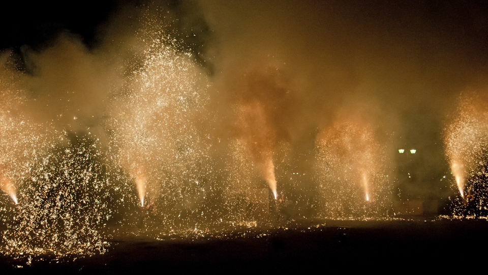 最後は同時に5本。 静岡市内で手筒花火を制作する煙火保存会が手がけているそうです。