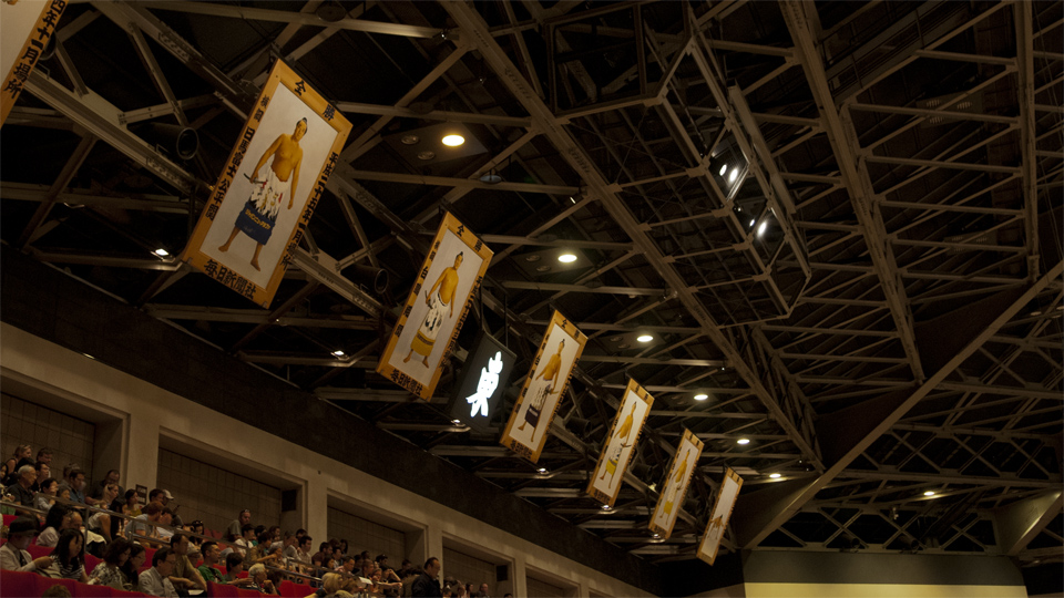 天井には「優勝額」が掲げられている。 縦3・17メートル、横2・28メートル。重さ約80キロ